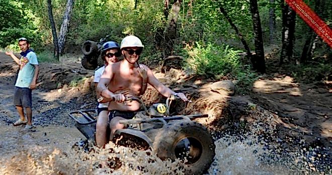 Sonunda tatilimizde eğlenceli bir gün geçirebildik. 1 haftadır yapmadığımız tur kalmadı diyebilirim hepsi güzel ve keyifliydi fakat eğlence olarak kesinle Marmaris Atv Safari turunu tercih etmelisiniz. Bizim programımızda en son tur olarak ayarlamıştık fakat yanlış yağmışız diyebilirim. Aracı kendiniz kullandığınız çok çok daha eğlenceli bir hal alıyor. Çok ıslanıyorsunuz hemen hemen her yerde su fişkiyeleri var. Dere yatakalrınınn içinden geçmek de ayrı keyif veriyor.