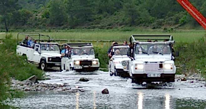 Önce bu bize göre değil dedik ama Jeep Safari den sonra iyi ki gelmişiz dedik. Jeeplerle otelden alıyorlar bütün müşterileri buluşma noktasında toplandık,kafile halinde yola koyulduk. Sonra en zevkli kısım olan su savaşları başlıyor.Çocuklar gibi şen olunan bu kısımda eğlenmeyen kimse kaldığını sanmıyorum. Öğlen yemeğinde tavuk salata pilav makarna isteyene köfte omlet var, lezzetli ve kaliteli. Şelale ve Kız kumu da görülmeye değer. Tur dönüşünde de tekrar otele geri bıraktılar.Bir çok firma var hepsi aynı turu yapıyor ama sadece fiyatlar değişkenlik gösteriyor.